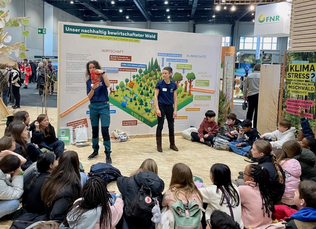 Der Stand war promenierter Anlaufpunkt, so kamen Bundeslandwirtschaftsminister Cem Özdemir, Unionschef Friedrich Merz und FDP-Chef Christian Lindner, Bundesbauministerin Klara Geywitz, Bundesumweltministerin Steffi Lemke, Berlins Regierender Bürgermeister Kai Wegner sowie der bayerische Wirtschaftsminister Hubert Aiwanger vorbei. Es war eine erfolgreiche Grüne Woche mit spannenden Begegnungen und zahlreichen Vorträgen in und um die „Waldarena“.