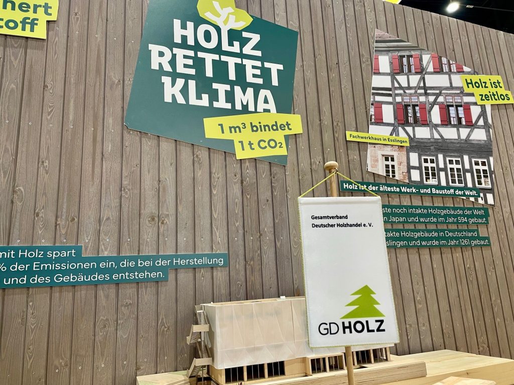 Auf dem Stand präsentierte die Initiative mit abwechslungsreichen Fotomotiven aus den Bereichen Holz- und Forstwirtschaft die Kernaussagen von „Holz rettet Klima“ und wies u.a. auf die positiven Effekte des Holzbaus hin. Zahlreichen Schülergruppen standen die GD-Mitarbeiter bei der Beantwortung der Quizfragen rund ums Holz mit Rat und Tat zur Seite. Am Stand wurden zudem Architekturmodelle von Holzbau-Projekten ausgestellt.
